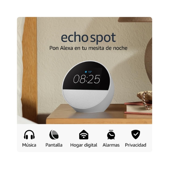 Amazon Echo Spot (modelo de 2024) | Despertador inteligente con sonido de calidad y Alexa | Blanco