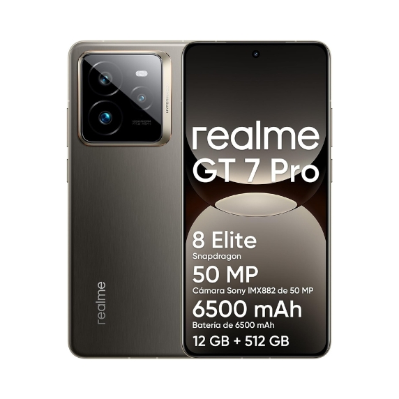 realme GT 7 Pro 5G Smartphone 12 + 512GB, Procesador Snapdragon 8 Elite, Cámara AI Ultra Clear Snap, Pantalla RealWorld Eco de 6,78″, Batería de 6500 mAh, IP69, Android 15, Gris, Sin Adaptador
