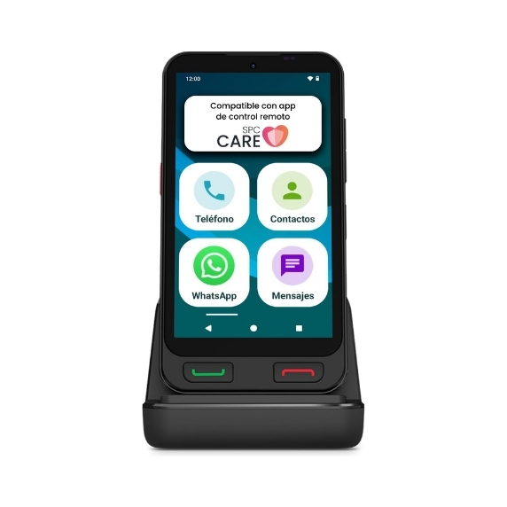 SPC Zeus 2 + Carcasa | Smartphone para Mayores Compatible con App para Control y ubicación remota | Modo fácil, Botones físicos, Iconos XXL | Pantalla 5”, Dos cámaras, 64GB | Base de Carga, Botón SOS