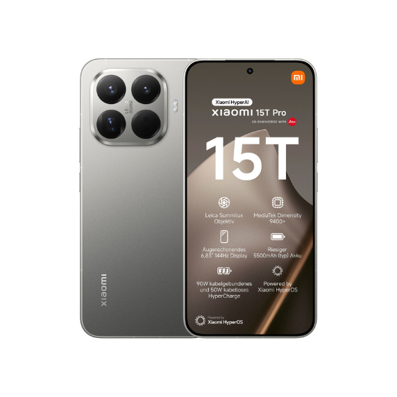 Xiaomi 15T Pro, Gris, 1TB, 12 GB RAM, 6.83″ AMOLED WQHD+ Eye Care, MediaTek Dimensity 9400+, 5500 mAh Version Europea – Sin Cargador