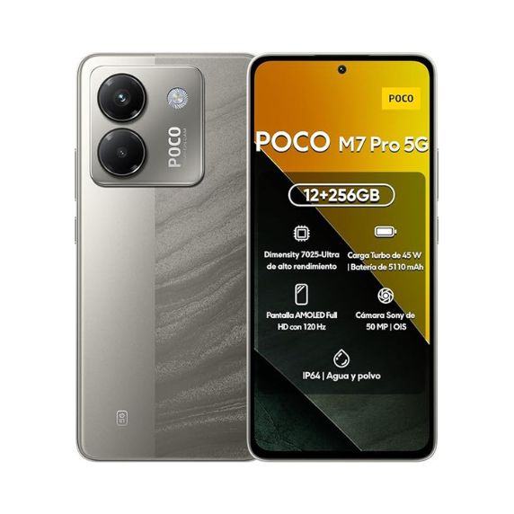 Xiaomi Poco M7 Pro Teléfono Inteligente 6.67″ AMOLED 120Hz Full HD Dimensity 7025 Ultra 5110mAh + Carga Turbo 45W Cámara 50MP Sony (Plata, 12+256GB)